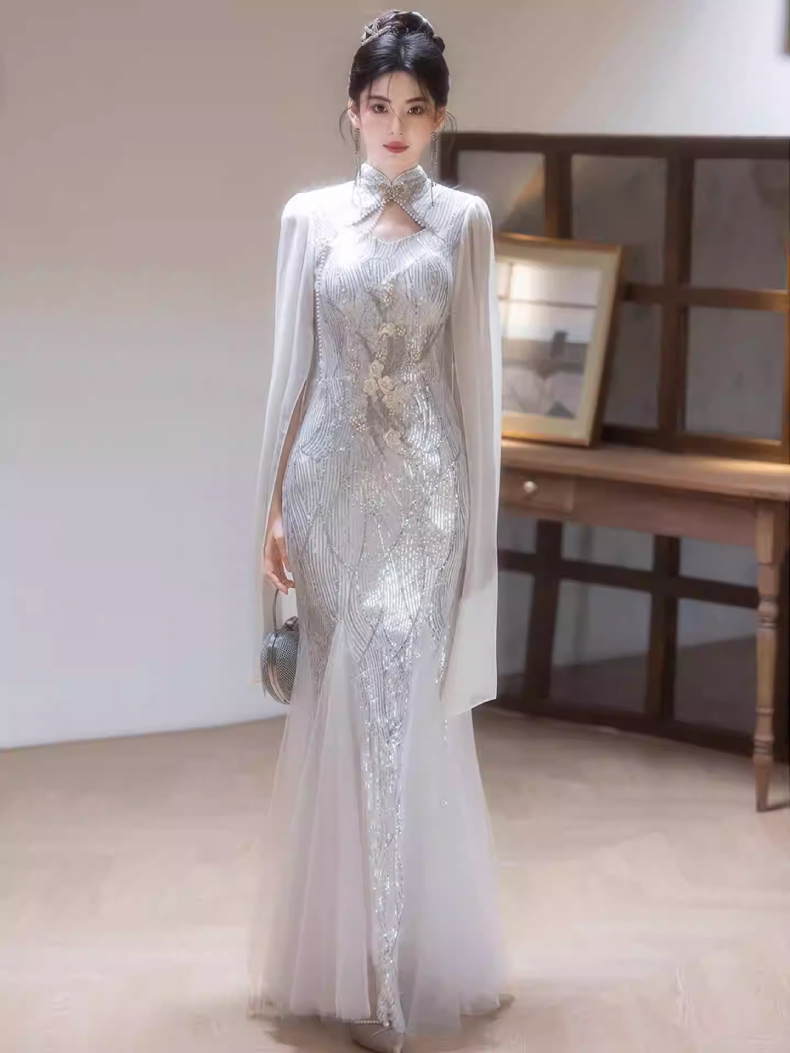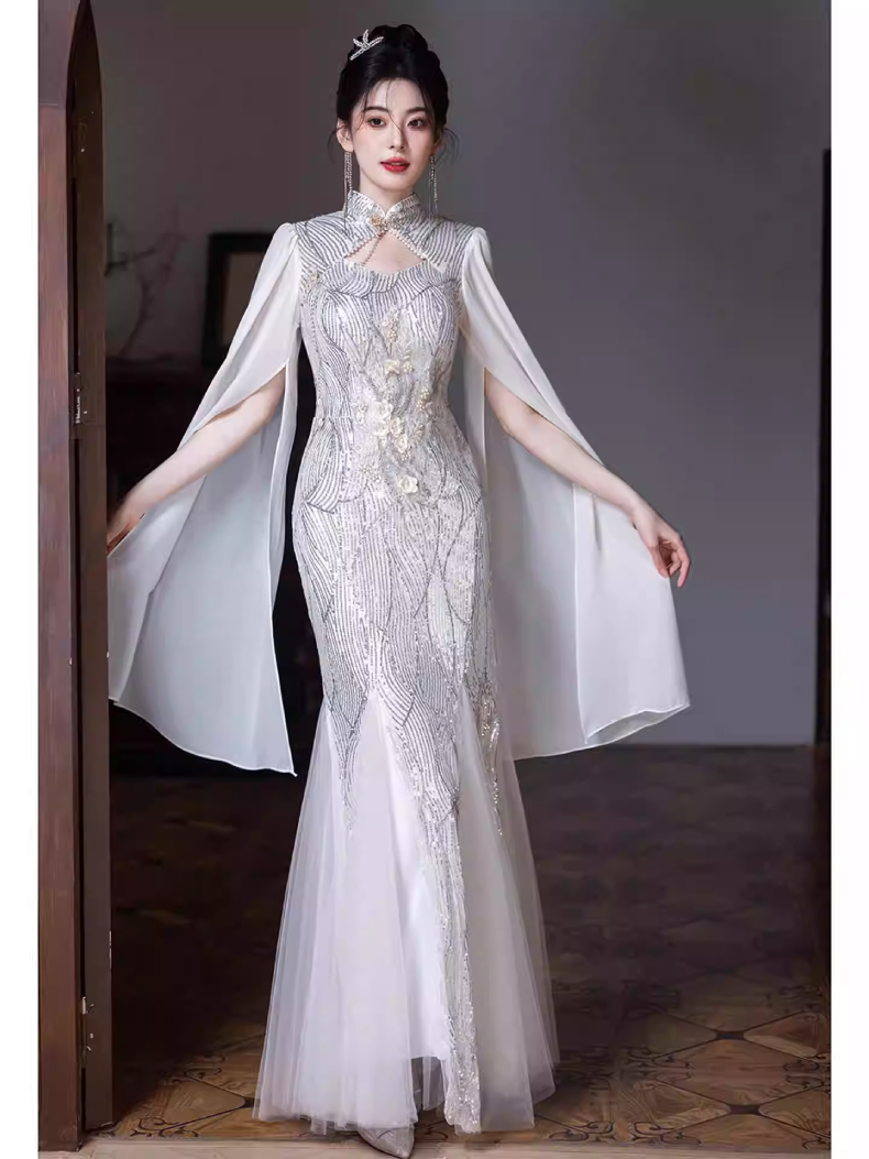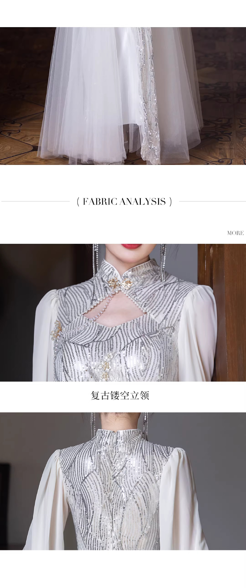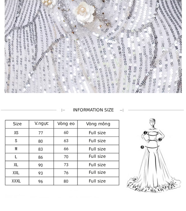 Chất liệu thượng hạng: Tơ tằm, satin, voan tơ, đính kết đá pha lấp lánh.