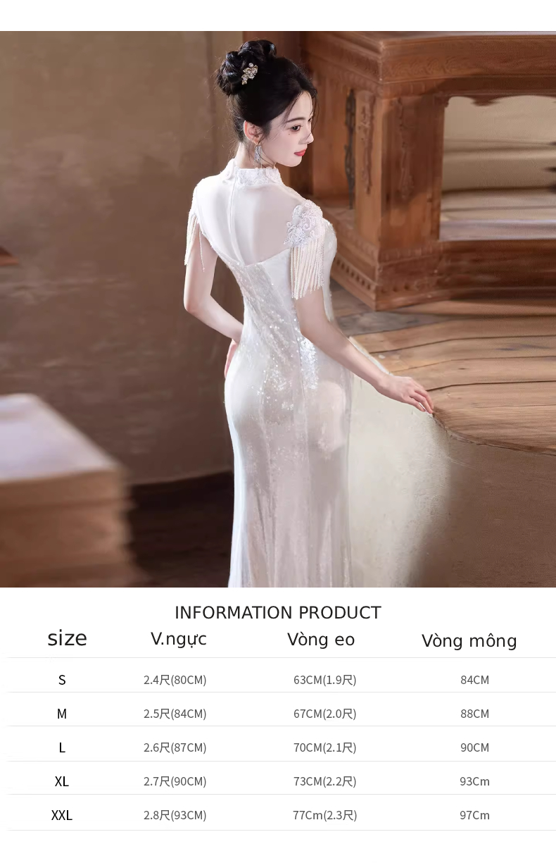 Mua Đầm dạ hội màu trắng, tinh tế và thanh lịch, hoàn hảo cho một chiếc váy đính hôn cao cấp kiểu đuôi cá lấp lánh – VDH228